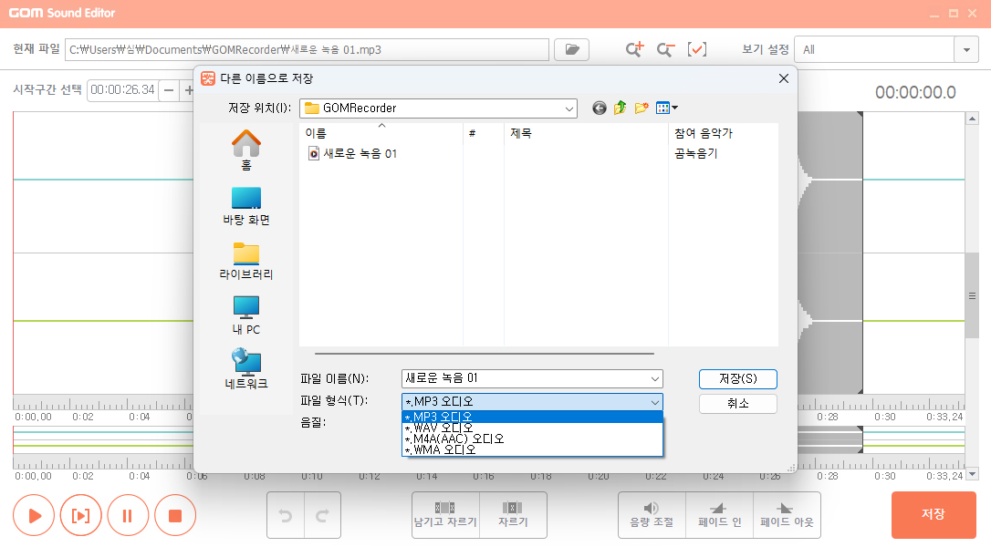 ② 모든 설정이 완료되면 우측 하단의 저장 버튼을 눌러 편집한 녹음파일을 저장하고 완료합니다.
